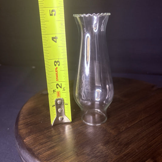 Miniature Hurricane Chimney w/Pie Crust Top~Clear Glass 4.75”, 1.25” Fitter Base