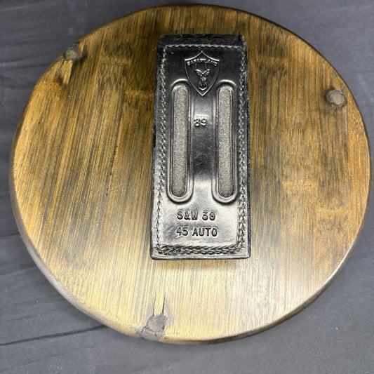 Safariland 89 Single Chrome Button Leather Basket Weave Pouch For S&W 39 .45