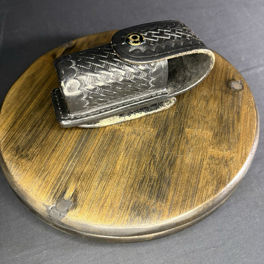 Leather Basket Weave Black Mace Carrier Holster Chrome Snap