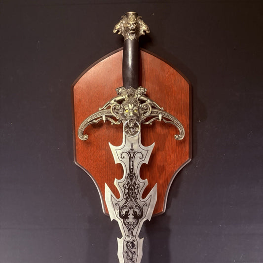 4-Headed Lion Sword 41" Beautifully Etched Blade w/ Rings For Hanging