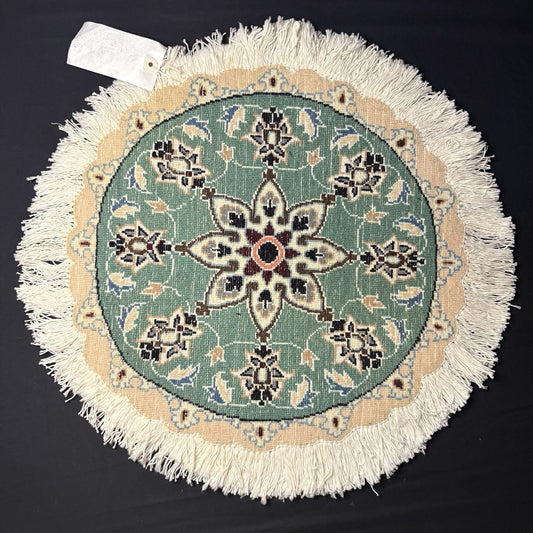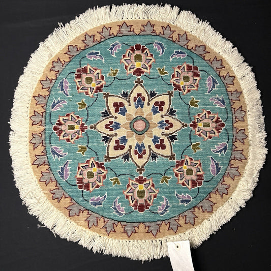 Round Rug Size 18”x18” Or 45cm Blue Medallion Hand Knotted Rug