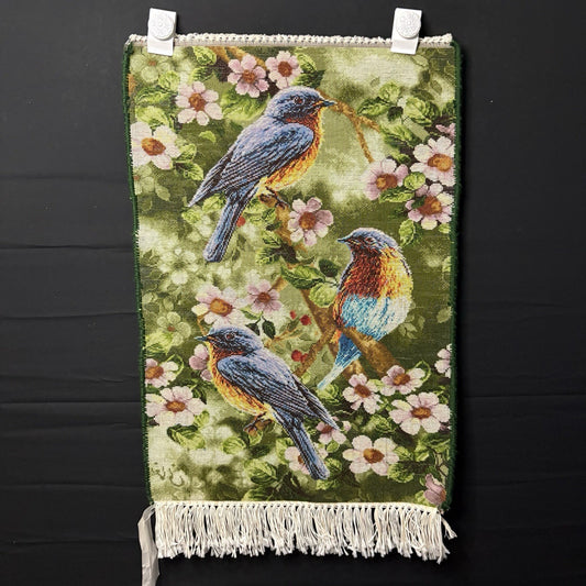 Pictorial Rug Hand Knotted Birds 24”x16” 60X40cm 224KPSI w/Rug Hangers