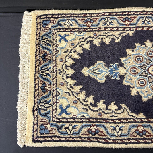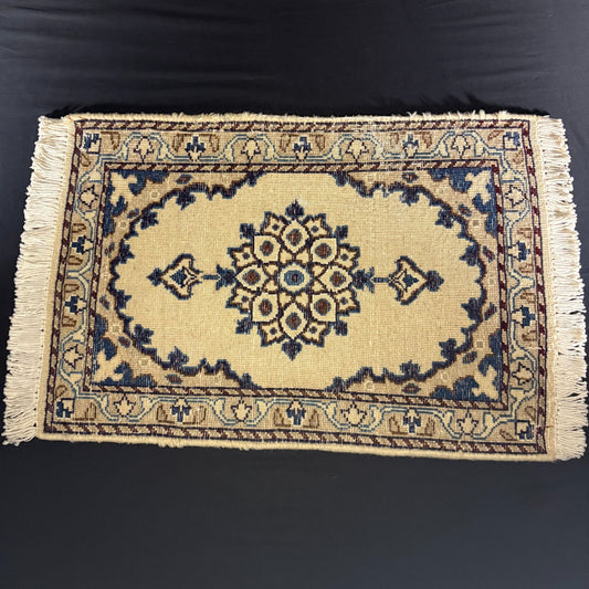 Rug Hand Knotted Blue Medallion 2'x1' or 23"x15" or 35cm X60cm