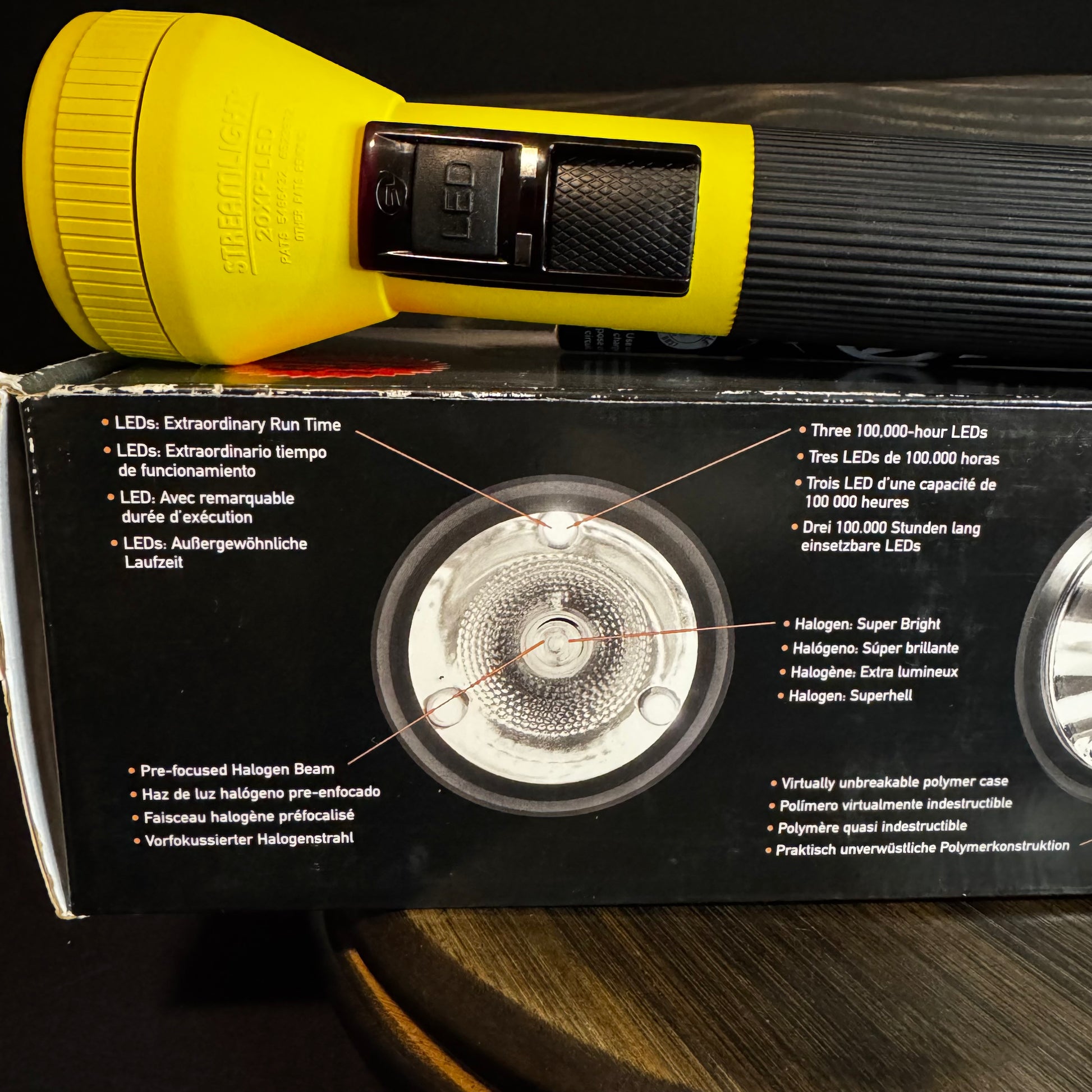Full-size yet lightweight incandescent/LED rechargeable that combines the brightness of an incandescent with the extended run time of LEDs – the best of both worlds.