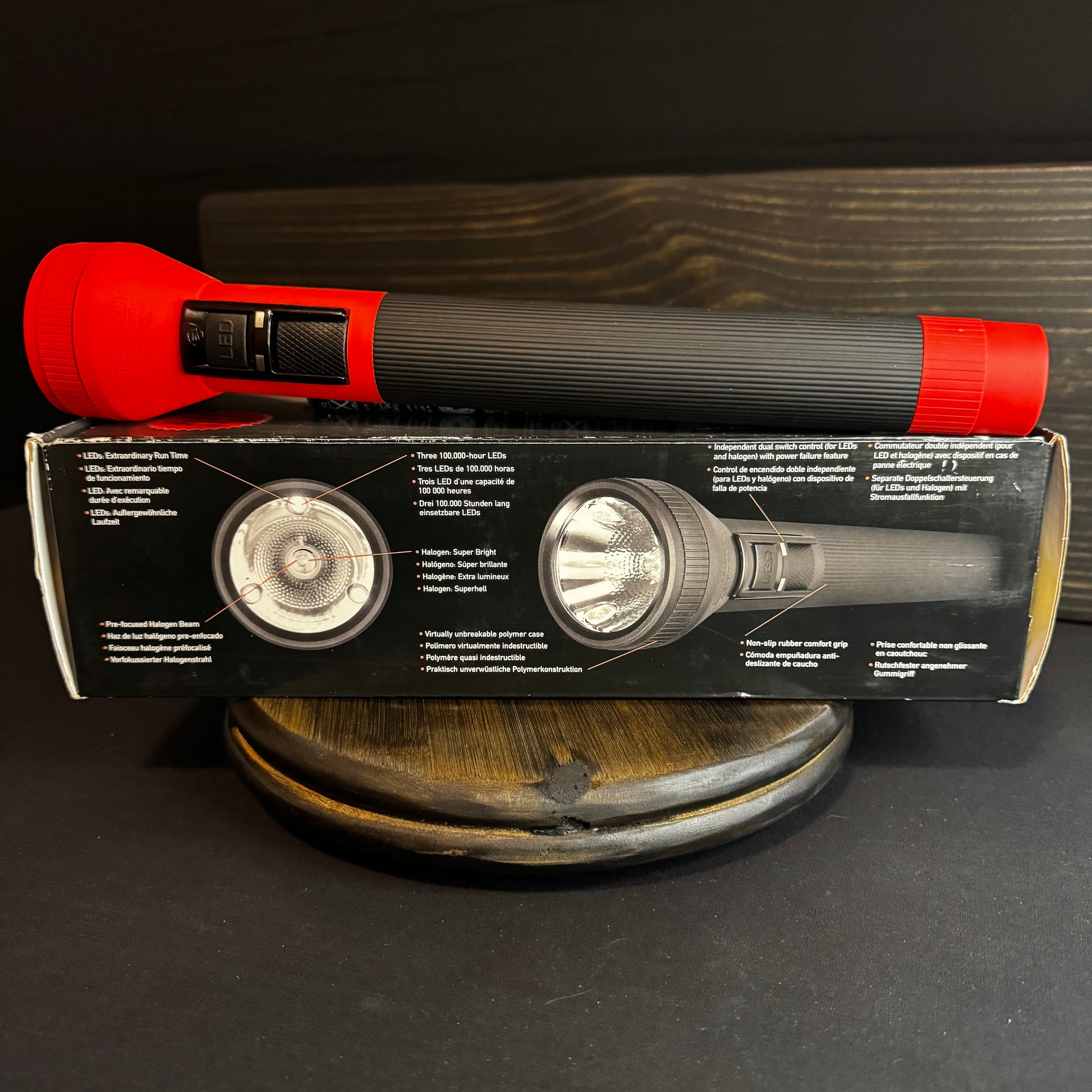 The Streamlight SL-20XP LED is a rugged, weather-proof hybrid flashlight with many outstanding features. Lightweight, super tough nylon polymer body, polycarbonate lens, and non slip rubber comfort grip area. Use the halogen lamp for blindingly bright light, or use the LEDs for extended run time. Three position (on- halogen, on- LED, blink- halogen) push button switch guaranteed by the manufacturer, Streamlight, for life.